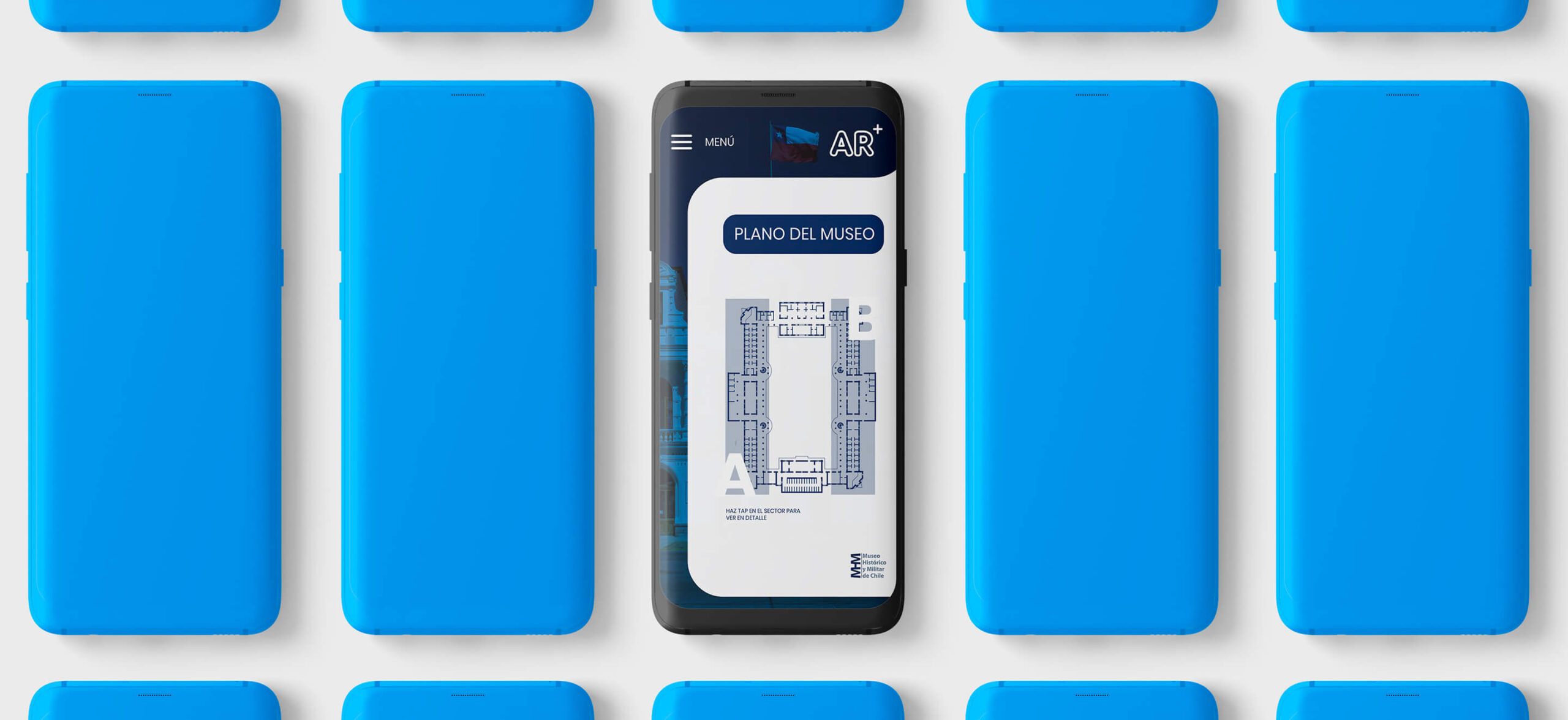 Se tomó el desafío de hacer más didáctica y amena la entrega de información a los visitantes del museo, por lo que se propuso el desarrollo de una aplicación de realidad aumentada que permitiría al visitante conocer in situ información adicional y dinámica al enfocar directamente su dispositivo (Smartphone o Tablet) sobre un objeto histórico (cuadro, uniforme, etc.).